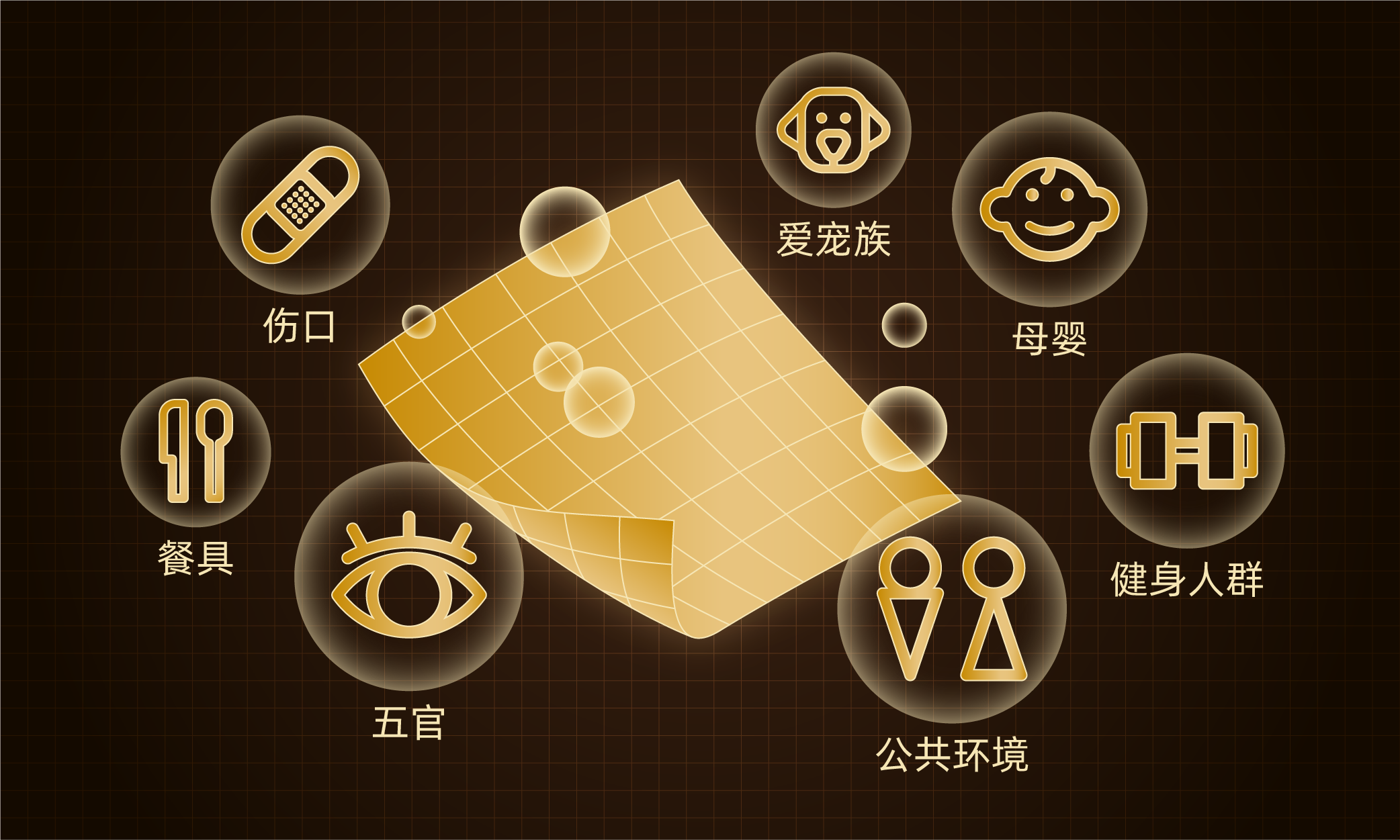 特點:對人體無藥物作用殺菌,對細菌有藥物作用殺菌。原理:紙巾中含有納米藥物膠囊,利用紙巾中自然含水對細菌進行緩慢釋放靶向性殺菌。殺菌率大于90%,測試方法:取出紙巾中自然含水提取液,使用GB15979-2002-C4標準測試。